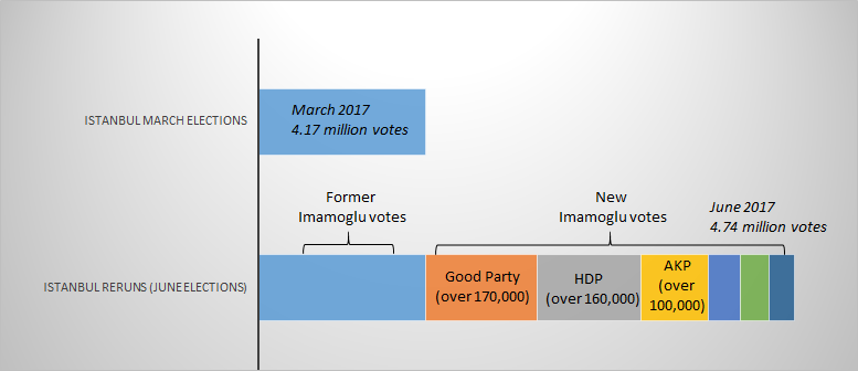 They did so despite the fact that Erdoğan and the AKP managed to get and to publicize a letter from the imprisoned PKK leader, Abdullah Öcalan, stating that the Kurds should stay neutral in this election. They also broadcast an interview with Abdullah Öcalan’s brother Osman Öcalan (officially viewed as a terrorist by the Turkish state) on state television who announced that the Kurds should not vote for Imamoğlu. Yet none of these efforts prevailed. On the contrary, not only did Imamoğlu preserve his support amongst Kurdish voters from March 2017 (estimated to be over 700,000), but over 160,000 new HDP followers who had remained undecided in the March elections decided to vote for him in June. The returns make clear that Imamoğlu could not have won either election without the Kurdish votes.