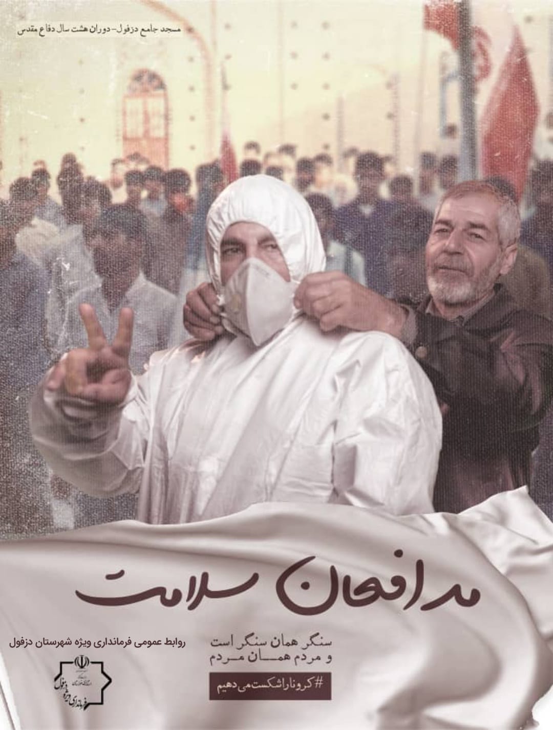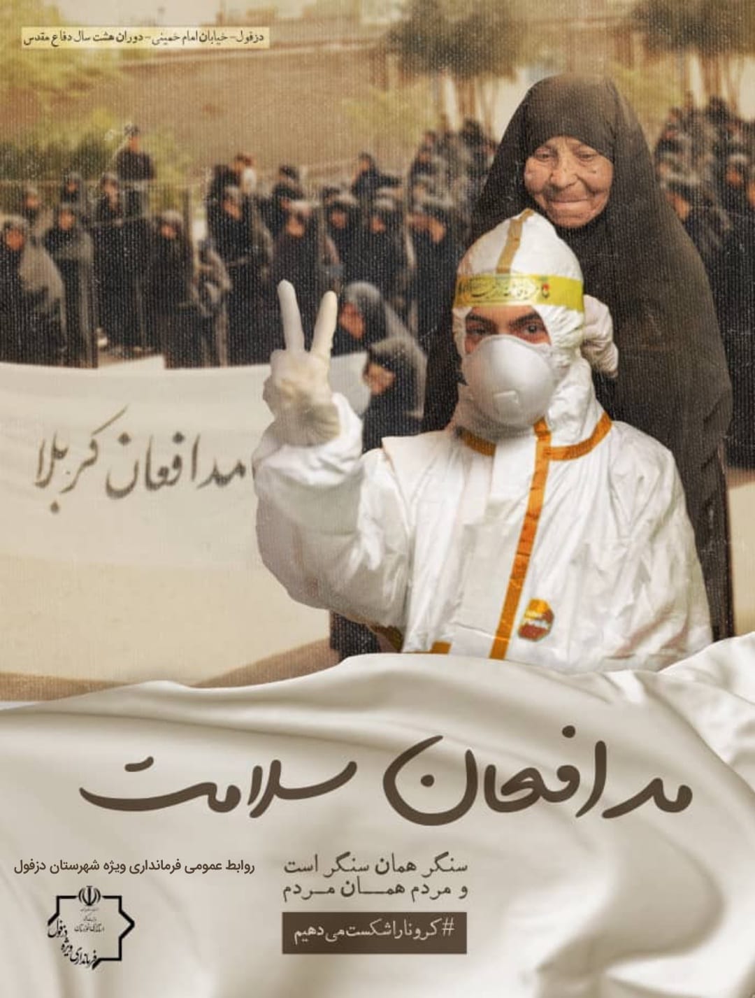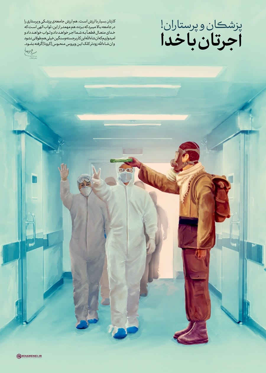 The Iranian government is fighting against the coronavirus pandemic not only with travel restrictions and social distancing rules, but also with ideological tools that promote unity and resistance. Through the production of posters and other media, Iran is creating connections between earlier battle