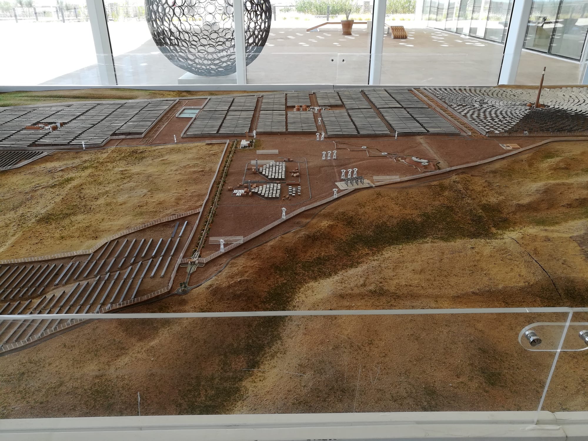 A model of the solar complex in the entrance hall of MASEN at Noor-Ouarzazate. Photo by Kelly Pemberton.