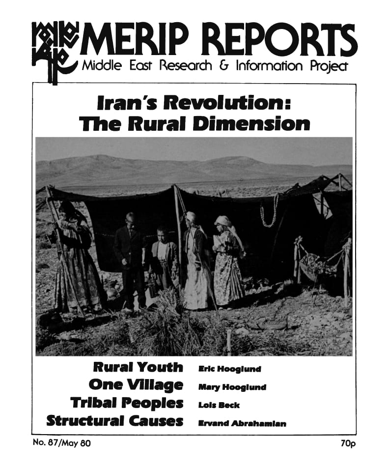 Although most MERIP articles about the revolution analyze its urban aspects, the May 1980 issue, “Iran’s Revolution: The Rural Dimension,” stands out for its focus on rural participation and reactions to a decidedly city-driven revolution. The issue includes detailed and astute eyewitness accounts by Eric Hooglund and Mary Hooglund as well as Lois Beck's article about the relations of tribally-organized populations with the Pahlavi state, the revolution and the post-revolutionary regime. It speaks to the depth of MERIP’s roster of authors on Iran that the issue also includes Abrahamian’s now-classic “Structural Causes of the Iranian Revolution,” which convincingly sums up the causes of the revolution as a contradiction between “socioeconomic development” on the one hand and “political underdevelopment” on the other. While scholars’ understanding of the causes of the revolution has deepened and widened over the years, Abrahamian’s seven-page floodlight onto the revolution, merely a year after its victory, is no small feat.