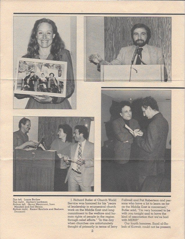 The responses, in short, captured the reasons why MERIP has survived—and sometimes thrived—despite the recurrent financial and logistical difficulties and the series of setbacks for freedom and social justice in the Middle East and around the world. MERIP itself has made concessions to changing times that may not have been entirely for the best. As the quotable Joan Mandell said of the early days: “MERIP was initiated as an egalitarian collective. We believed in non-hierarchical governance.” Sometime along the way, as another veteran put it, the organization “went corporate,” allocating job titles and adopting a conventional non-profit structure with a board of directors with fiduciary and organizational governance responsibility. Part of the struggle was to keep something of the New Left spirit alive within our own ranks in the days of Reagan, Thatcher and the more reactionary versions who followed.