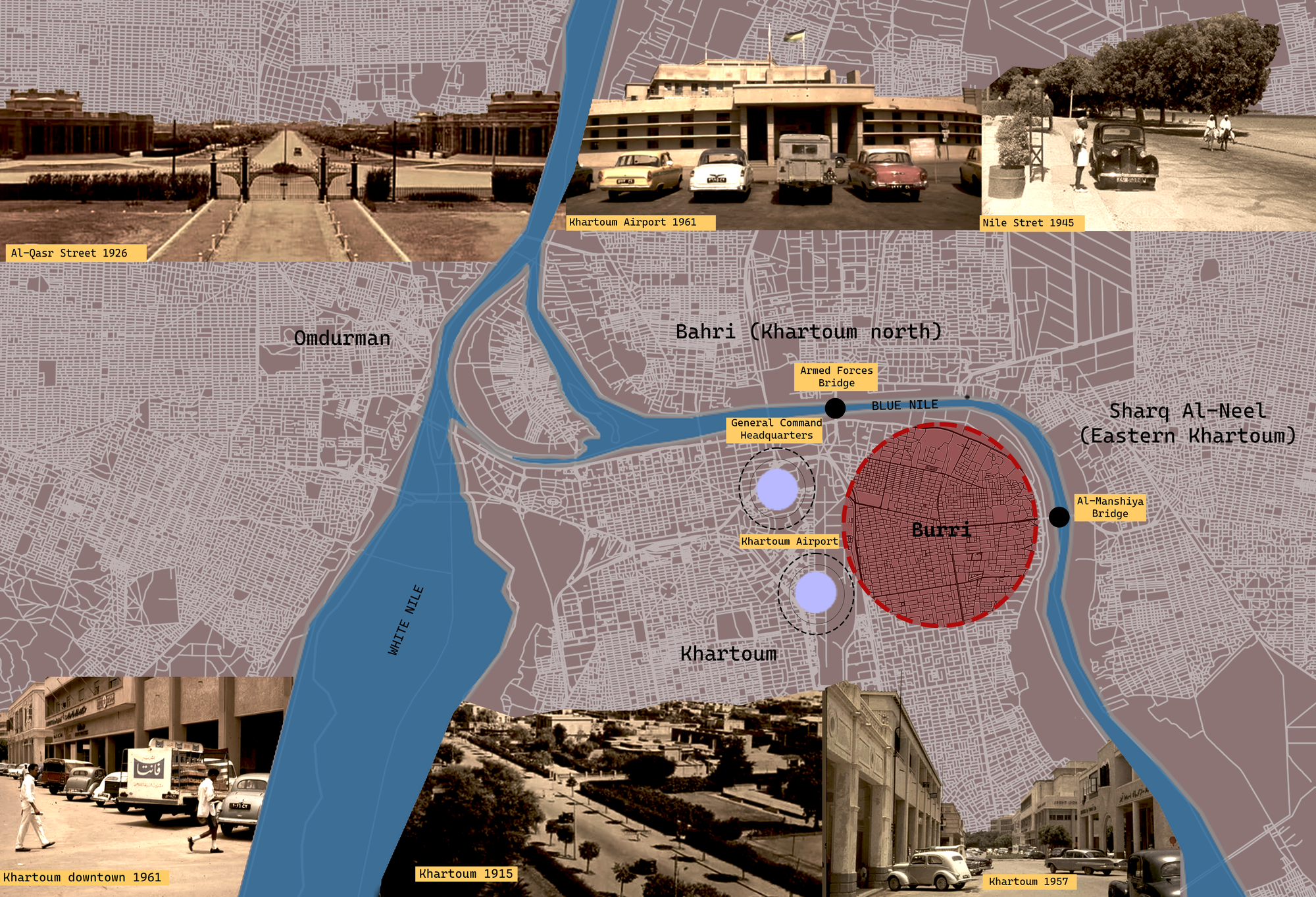 As part of the metropolitan core that links the three cities of Sudan’s capital—Khartoum, Bahri (Khartoum North) and Omdurman—Burri lies in the shadow of numerous strategic and military sites: the Sudanese Military General Command headquarters, Khartoum International Airport, the presidential palace complex and a concentration of government buildings. It is also linked to Bahri and Sharq Al-Neel (Eastern Khartoum) through two critical transportation arteries, the Armed Forces Bridge and Al-Manshiya Bridge.