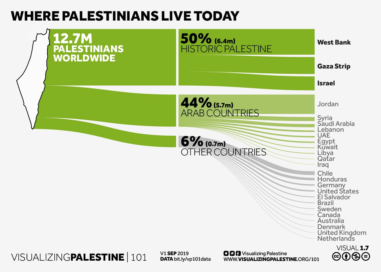 Today the global Palestinian population is 14–15 million. About 7 million live inside the borders of what was British Mandate Palestine. They include about 1.6 million citizens of Israel and 372,000 inhabitants of Israeli-annexed East Jerusalem, most of whom are permanent residents but not Israeli citizens. About 3 million Palestinians live in the West Bank and 2.2 million in the Gaza Strip (before October 7, 2023). An estimated 7 million live in diaspora outside the country they claim as their national homeland. (In addition, about 20 percent of the 24,000 Syrian Druze population in the Golan Heights, which Israel occupied in 1967 and annexed in 1981, have taken Israeli citizenship; the others are permanent residents with a status similar to Palestinians of East Jerusalem.)